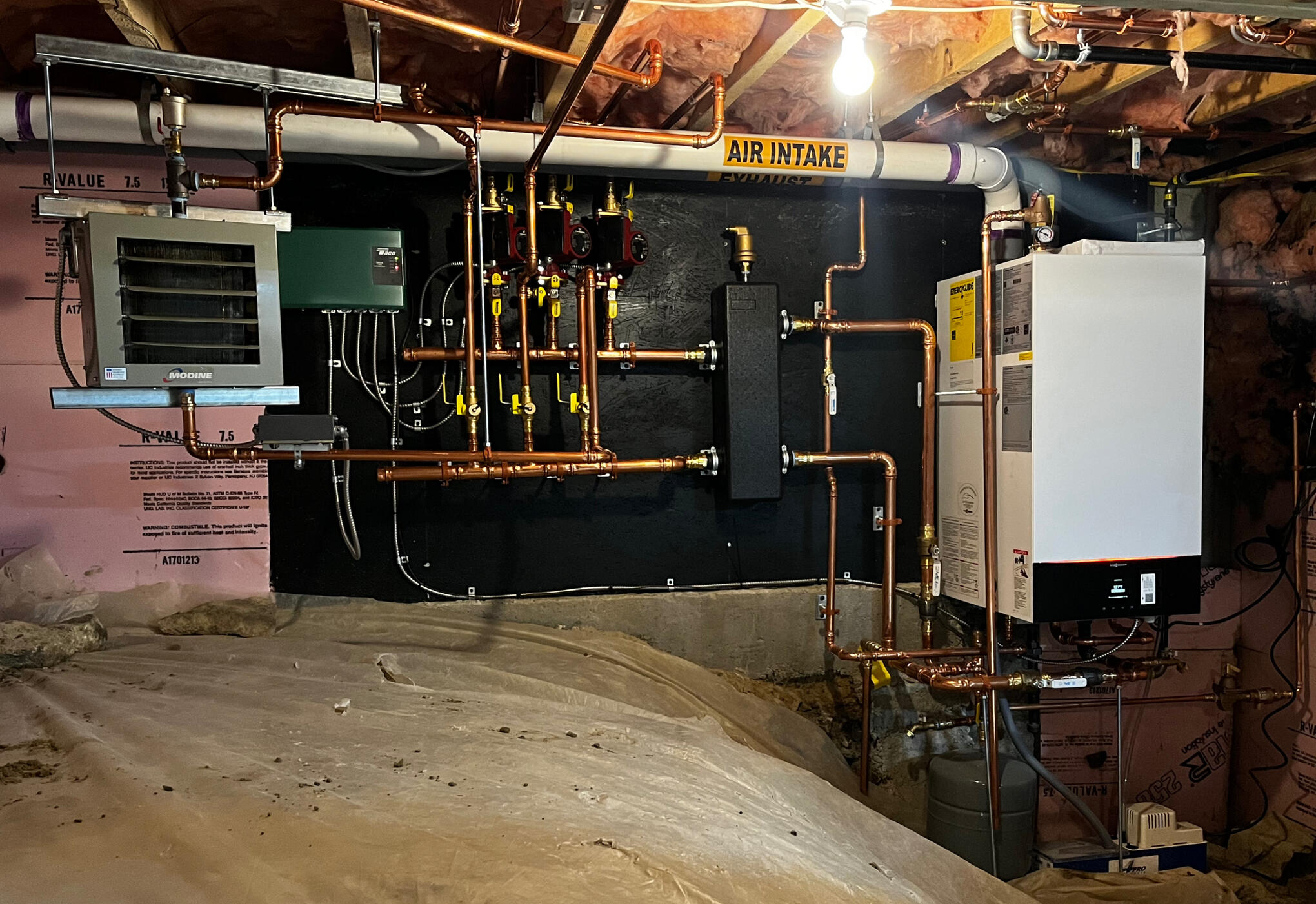 We install high-efficiency forced hot water boilers for gas, oil, or electric systems—whether you're using baseboard or radiant heat. Our team is experienced in both new installations and system replacements. We work with reliable, trusted brands like Viessmann, Weil-McLain, IBC, and Buderus to ensure dependable, long-lasting performance. Contact us today to discuss the right heating solution for your home or business.